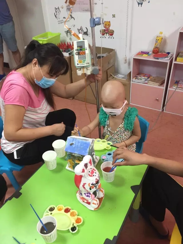 工作人员为孩子安排了“手绘石膏娃娃”的diy环节,在家长的指导下,孩子们专心致志的进行石膏绘画,化身小小艺家,描绘出一片五彩斑斓。他们忘却了病痛,儿童活动室不时传出欢声笑语,孩子都一改平时的精神面貌,露出了纯真的笑脸。
