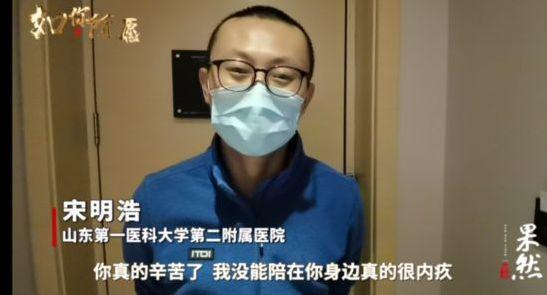 诗中的丈夫是山东第一医科大学第二附属医院急诊科援助武汉的护士宋明浩,妻子是同一家医院的消化科护士张晓宁。远在武汉的宋明浩,一直想着能让妻子吃上她最爱的辣鸭脖,并为即将到来的宝宝储存一份脐带血。